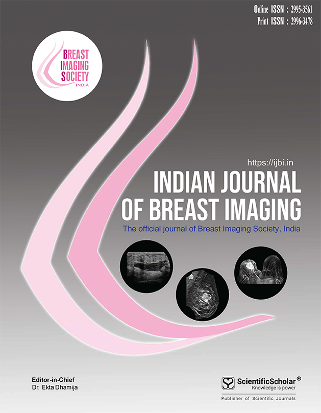 It given immense pleasure to announce that inception of the academic venture of our “Breast Imaging Society, India” has finally become reality in the form of “Indian Journal of Breast Imaging”. This journal has been introduced with the aim of assisting growth of researchers who have been working dedicatedly in this field. The journey has not been easy but the goal is very clear. The entire editorial board has been working hard to provide the readers with extensively peer-reviewed articles which may have impact in their day-to-day practice. The team is aiming for IJBI to be a suitable platform for the researchers to share their innovative studies which would interest as well as enrich the readers.