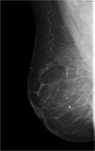 52 year old lady who underwent wide local excision for stage I breast carcinoma of right breast 7 years ago has presented for routine screening mammogram.