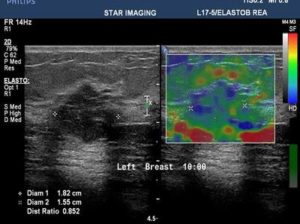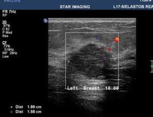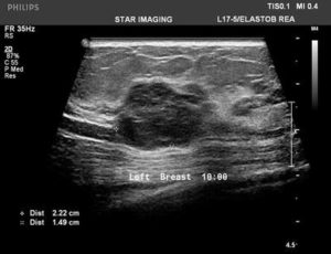 39yr old lady with history of lump in the left breast UIQ, No previous imaging done. No positive family history for CA Breast/Ovary. Pre-Menopausal Status.
