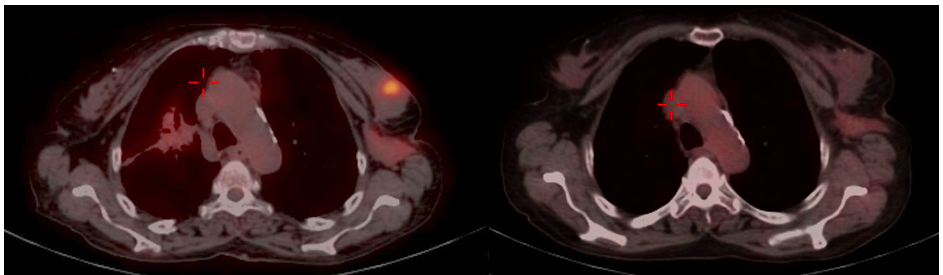 1. Surov, A. et al. Primary and secondary breast lymphoma: Prevalence, clinical signs and radiological features. Br. J. Radiol. (2012) doi:10.1259/bjr/78413721. 2. Raj, S. D. et al. Primary and secondary breast lymphoma: Clinical, pathologic, and multimodality imaging review. Radiographics (2019) doi:10.1148/rg.2019180097. 3. Shim, E., Song, S. E., Seo, B. K., Kim, Y. S. & Son, G. S. Lymphoma affecting the breast: A pictorial review of multimodal imaging findings. Journal of Breast Cancer (2013) doi:10.4048/jbc.2013.16.3.254. 4. Kostakoglu, L., Agress, H. & Goldsmith, S. J. Clinical Role of FDG PET in Evaluation of Cancer Patients. Radiographics (2003) doi:10.1148/rg.232025705. 5. D’Souza, M. D. et al. FDG-PET/CT in lymphoma. Indian J. Radiol. Imaging (2013) doi:10.4103/0971-3026.125626. 6. Santra, A. et al. FDG PET-CT in the management of primary breast lymphoma. Clin. Nucl. Med. (2009) doi:10.1097/RLU.0b013e3181becdfc. 7. Kallam, A., Adusumalli, J. & Armitage, J. O. Surveillance in Patients With Diffuse Large B Cell Lymphoma. Mayo Clinic Proceedings (2020) doi:10.1016/j.mayocp.2019.05.011.