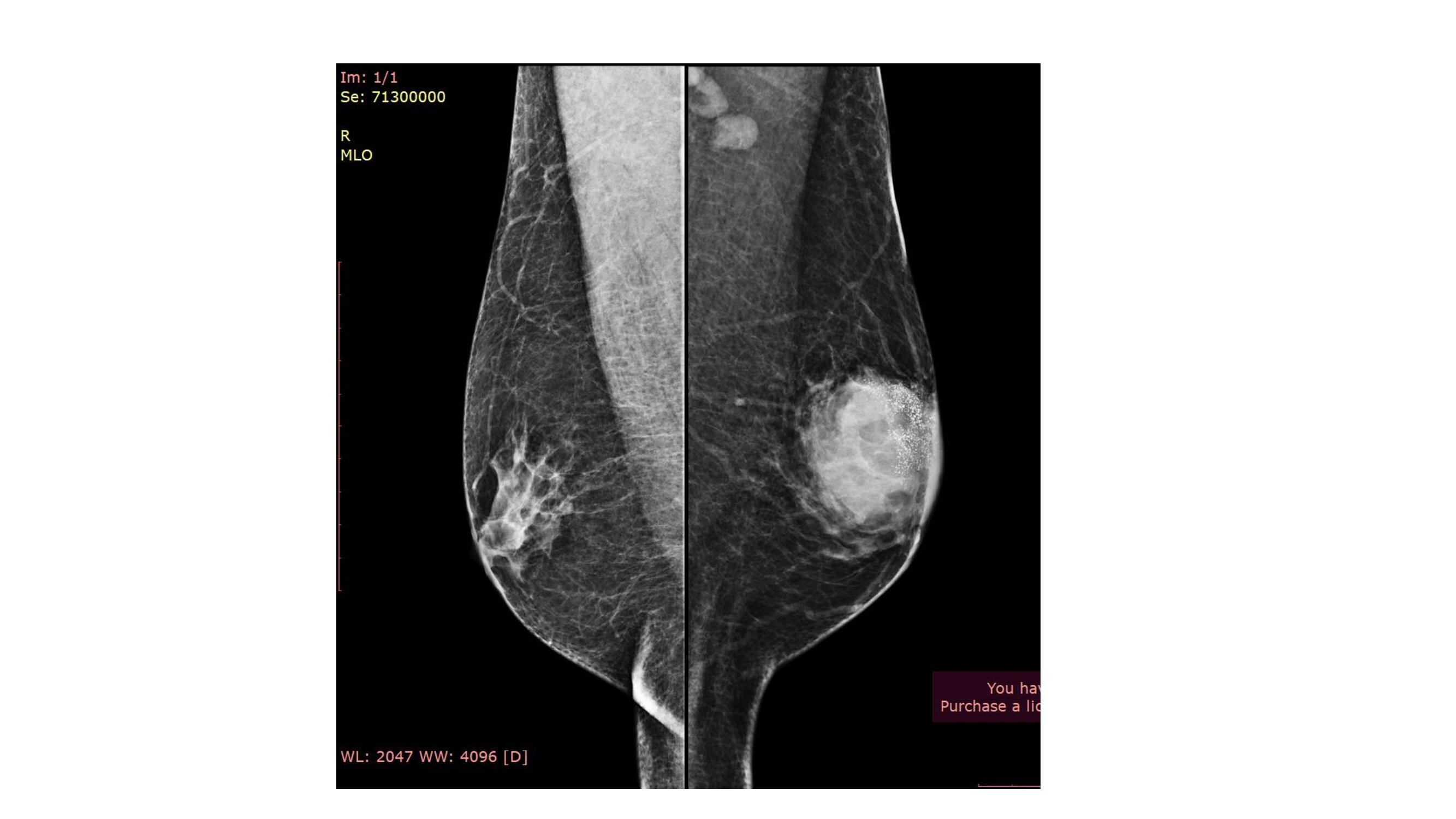 A 46 year old male patient presented with history of gradual onset bilateral painless lumps. As the lumps were painless he did not seek medical advice. One month back he noticed that the left breast lump is increasing and he started having pain in the left breast for which he consulted some local practioner and was given analgesics. However no documentation is available. As the pain persisted and redness developed, he presented to our breast clinic in AIIMS Rishikesh. There is no history of fever, diabetes mellitus, hypertension or tuberculosis. His family history was non- contributory. As per protocol, he underwent triple assessment.