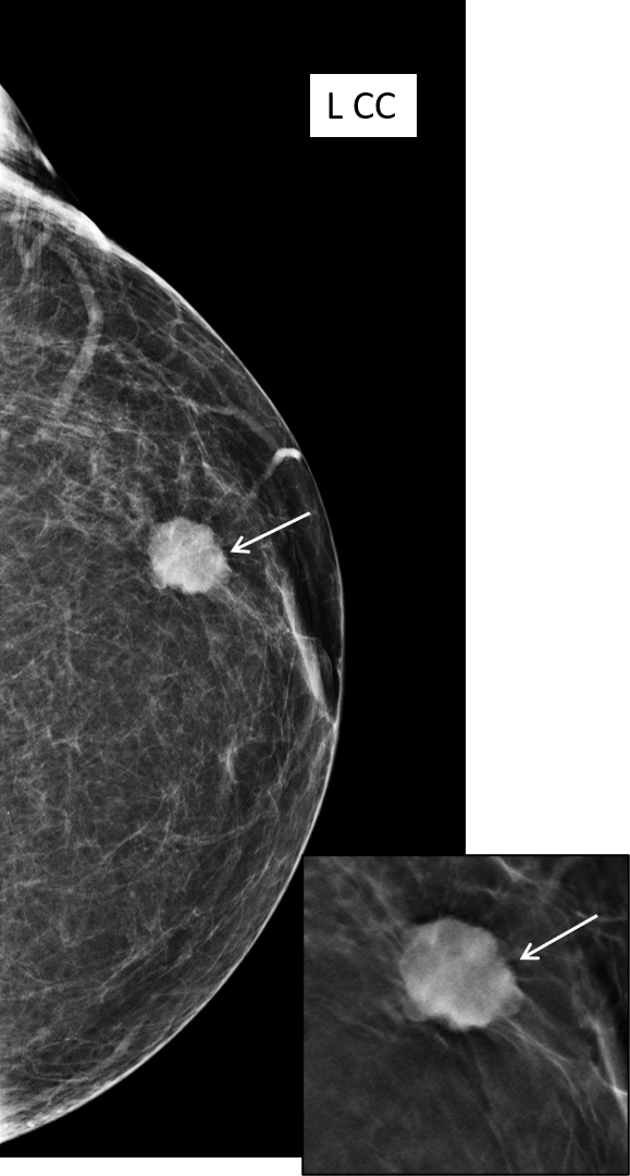 A 33-year-old lady presented with a painless palpable lump in left bre...